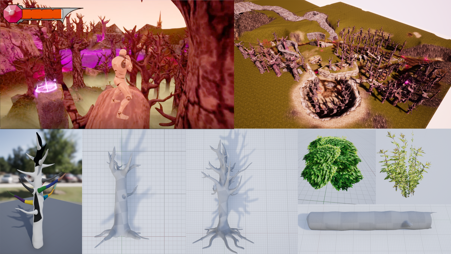 "Absurd Fury" was a 3rd person beat-em-up created in Unreal 4.19. It was a group project among myself and 3 other students. I focused on level design and set pieces for the first area of the game, the forest, while other students did the coding, UI, visual style and level assembly.